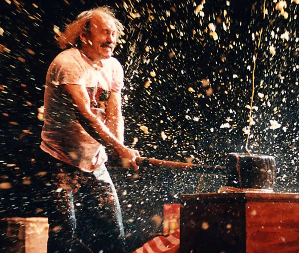 He played more than 100 concert dates a year for more than 30 years, obliterating more than 15,000 melons. He traveled with 15 footlockers of props, among them a “handgun” that fired plastic hands.