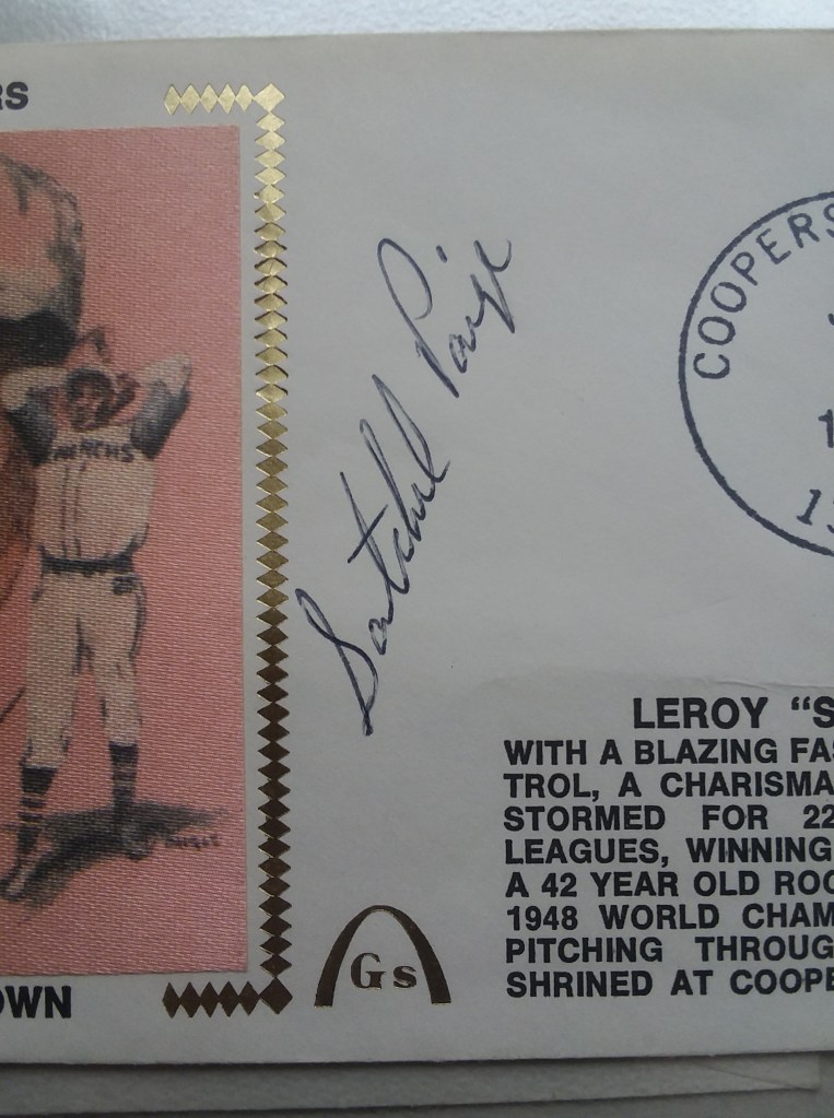 I won a teaching award in 2013 and it came with a small stipend. So I blew $200 of it on an autograph of Satchel Paige I had been coveting. It’s gorgeous. He’s in the puzzle today at 33D.