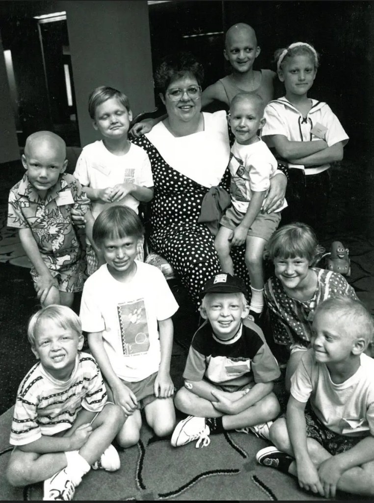 From her farmhouse in Illinois, Mary Kaye got to work. She started a foundation, and soon discovered dozens of other cases and then hundreds. It now serves over 9,200 families worldwide and has raised close to $4 million to fund research at 40 medical facilities. And of course she took care of Charley. For teeth, he got dentures. She came up with an idea that let him play outside with friends in the summertime heat. She’d give him a popsicle when he went out, and when he came back his head would be all blue or red because he’d rub it on himself to keep cool.