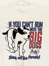 Remember the “Big Dogs” t-shirts that were popular for a time? I had one that said: “If you can’t run with the big dogs, stay on the porch.” On the other side it just said “Big Dogs.” Looks like they’re still in business at bigdogs.com.