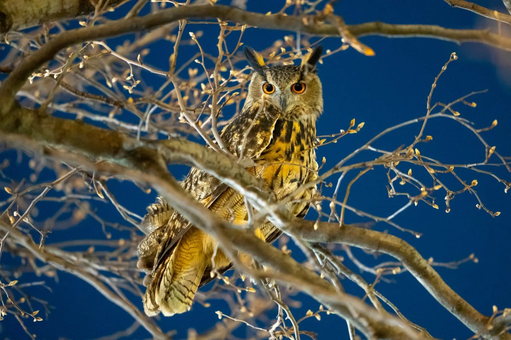 “Eurasian eagle-owls are one of the world’s largest owls. And with his nearly six foot wingspan, Flaco thrilled observers at flyout every night: a feline silhouette crouched on a tree limb, suddenly soaring into the nighttime sky, like a giant pterodactyl taking wing across the park. Within a week, he was becoming the apex predator he was born to be, proudly showing off the rats he’d killed with his bare talons.