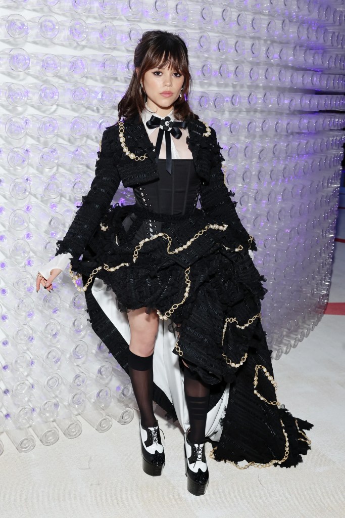 In today’s comments on the puzzle, Weezie said she liked its “contemporary/pop culture bent.” It includes Lady Gaga and Dua Lipa, for example. She noted the coincidence of its appearing the day after the posh Met Gala in NY. Then she confessed to being “obsessed with Jenna Ortega’s look.” We sent our photographer Phil to check it out. Yup. Good shot, Philly. It’s Jenna at the Gala. Matadorial.