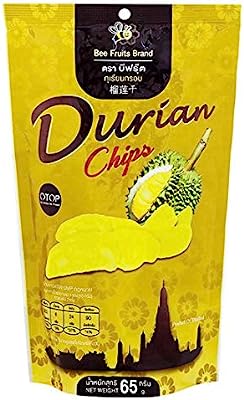 The smell is so bad that it’s banned in some hotels and on buses and trains in Southeast Asia. But it tastes delicious — a custardy, almond taste. I don’t recall ever seeing or tasting one. You can get durian chips on Amazon for about $12 for a 2.3 oz bag.