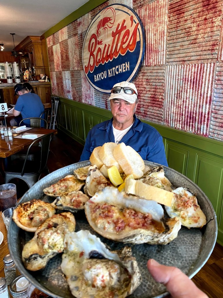 Then Melancon learned from a friend about a new type of oyster farming being tested by Auburn U. researchers. They were growing immature oysters (“spats”) from pinhead-size seeds in drums on land. When they grew to the size of a quarter, they were transferred to cages suspended in shallow water. Instead of taking five years to reach full size, they could be exposed to a rich flow of nutrients and become big, meaty, and delicious in just ten months. Plus the shells looked gorgeous on a raw bar. He was a pioneer in the field, and was back in business, although not as lucratively as before.