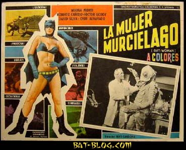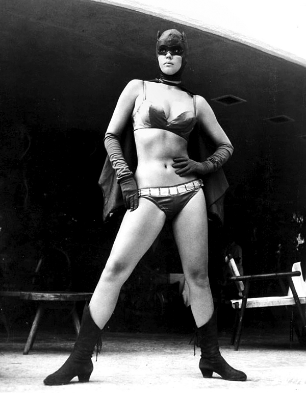 This sexy Batwoman is from a 1968 Mexican movie that is having a revival of sorts, according to the Times. The actress is the Italian-born Maura Monti, who is 81 now, and has had a wonderful life in journalism, art, and teaching, after her film career ended..