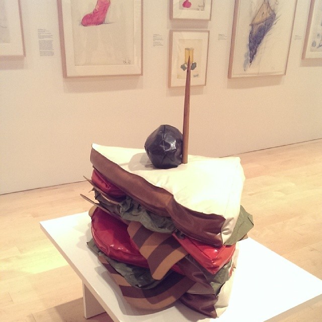 Everyone loves today’s constructor, Robyn Weintraub. So there were many clever clues/answers. Who else would clue BLT with: “‘Giant ___,’ soft sculpture of a sandwich at the Whitney Museum.” It turns out there is a pretty famous giant BLT sandwich by Claes Oldenburg at the Whitney.