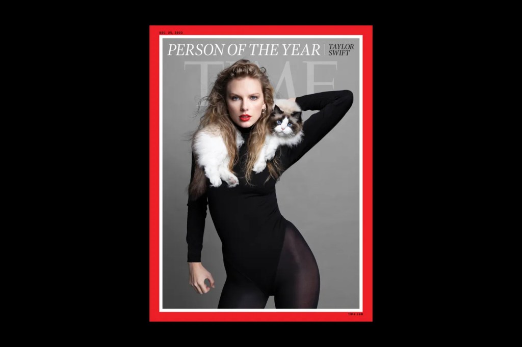 Word of Taylor’s selection as Time Mag’s Person of the Year yesterday even reached me under my rock, thanks to an excited email from OC reader River Road Norrie (Hi Nor!). There are three versions of the cover on sale, none of which does her justice, in our view. Tay’s cat Benjamin Button shares the spotlight with The “Purr”son of the Year on this one. (She has two other cats: Meredith Grey, named after the character from Grey’s Anatomy; and Olivia Benson, also named after a TV character (from Law & Order: SVU.)