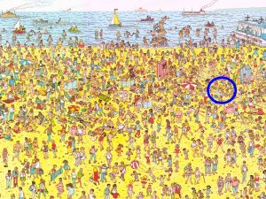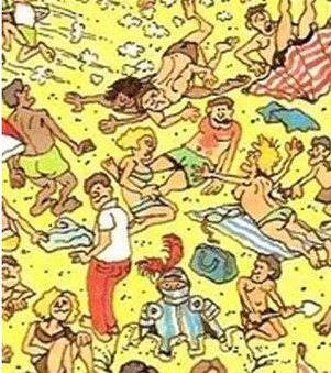 A few days ago the puzzle asked us what Merriam-Webster’s Dictionary and Where’s Waldo? have in common, and I was surprised to learn they had both been banned. Can you see why Waldo was banned, below?