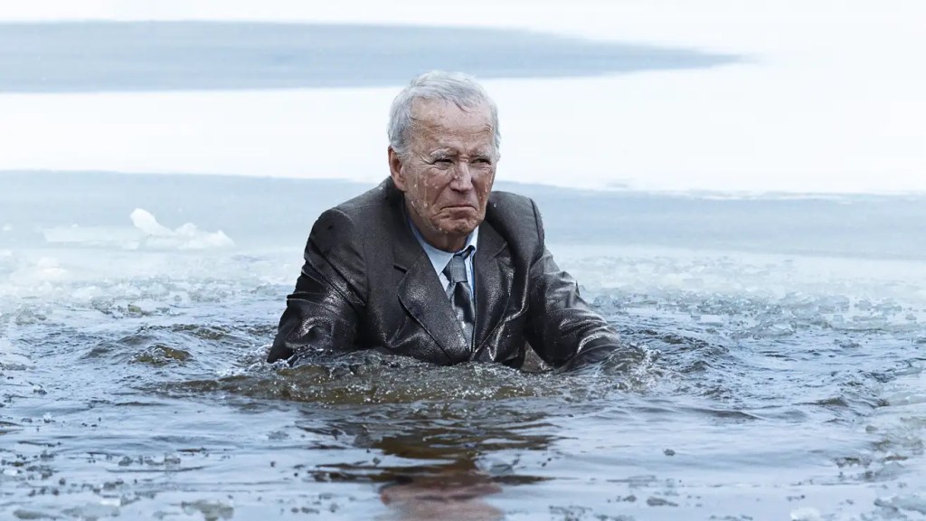 WASHINGTON—Ignoring his better judgment so as not to be called a chicken, President Joe Biden reportedly fell through a sheet of ice and plunged into dangerously cold water Monday after his buddies dared him to walk on the frozen Capitol Reflecting Pool. Sources confirmed the commander-in-chief’s chums had bet him $5 he couldn’t make it across the pool without chickening out, to which Biden responded, “Oh, yeah? Watch this.” The president is said to have taken only a few steps before breaking through the thin ice, sinking below the surface, and failing to reemerge for quite some time. According to reports, his friends’ playful laughter quickly dissolved into concern, at which point everyone in attendance scattered home so as not to get in trouble.