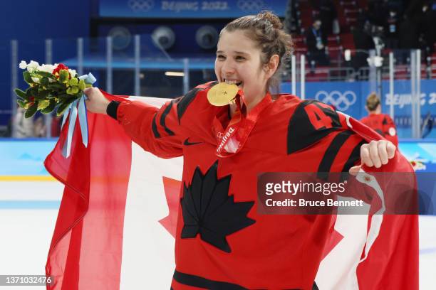 Now there’s a problem I’ve never had to face: Where to put my Olympic Women’s Ice Hockey Gold Medal while holding a flag and a bouquet?