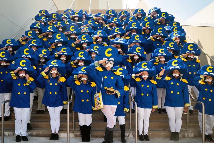 To celebrate the unveiling, at last year’s San Diego’s Comic-Con, 60 cosplayers marched the streets dressed as the good Cap’n. Here they are, in formation. Aye, aye!