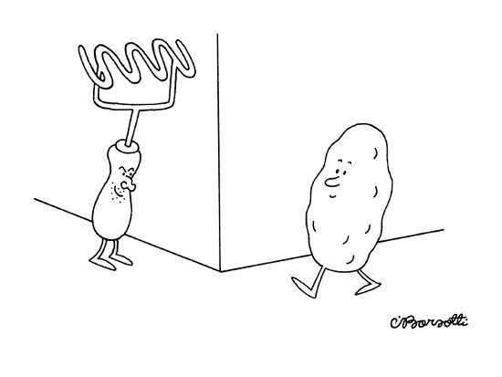 I couldn’t find my favorite potato cartoon. It was during the pandemic, when mask-wearing was on everyone’s mind, if not face. There are two potatoes talking. (They have arms, legs, and faces.) One is female and is wearing a mask. The other (male) one is unmasked and is saying: “You don’t have to wear a mask, Matilda — You’re a potato.”