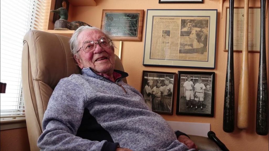 Art Schallock is the oldest living former major leaguer. Kinahora, he’s turning 100 this month! He came up with the Yankees and pitched for the Orioles too. He played just before my time of baseball consciousness — I didn’t recall his name. He roomed with Yogi: the hope was Yogi would share wisdom on how to pitch to opposing batters. Schallock remembers Yogi was a genius on batter weaknesses, but on some he just said “try to hold him to a single.”