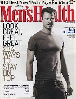 Here’s a subtle piece of puzzle craftsmanship by the constructors, Jeanne Breen and Jeff Chen: The clue at 30D was “Magazine with cover exclamations like ‘Bigger Biceps!’” The answer was MEN’S HEALTH and it crossed Josh DUHAMEL (at the H). Well, get this — Rex noted Duhamel was on the cover of Men’s Health twice. Here’s one of them.