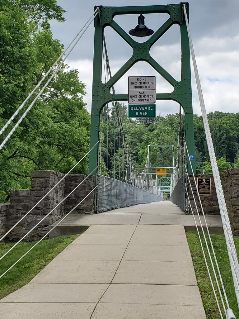 We’re closing shop early tonight. Linda and I had a great day celebrating our 40th anniversary. Yow! We crossed this bridge when we came to it. It brought us across the state line between PA and NJ. Our excellent lunch at the Black Bass Inn awaited us on the PA side.