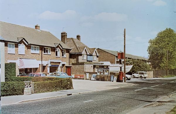 In 1978, a girlfriend I had at the time, gave me what I thought at the time, to be one of the dullest postcards ever (top photo). It shows Slough Road in Iver Heath, Bucks. Lately I’ve rediscovered the postcard and realised it’s actually a bit intriguing. For instance, what is that large boat doing in the car park of what was “The Prince of Wales” pub? Notice also the cars including a Morris Minor estate and a Vauxhall Viva. Notice also the neatly clipped hedge next to the shop and the advertising banner for the Slough Express.