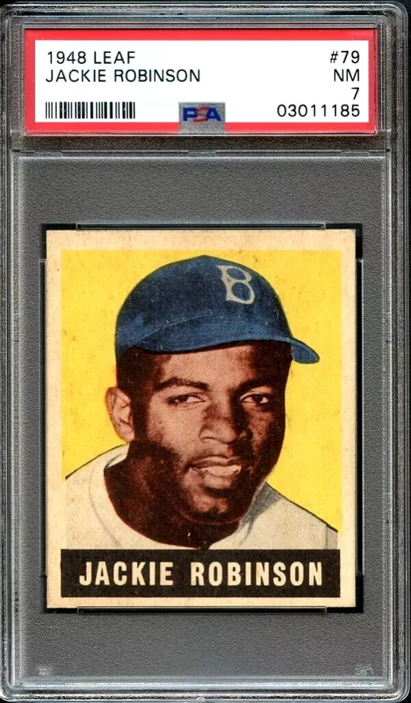 Two 1948 Jackie Robinson cards were taken too. The story did not say what condition they were in, but this beauty (graded 7, near mint) is selling on eBay for $150,000.