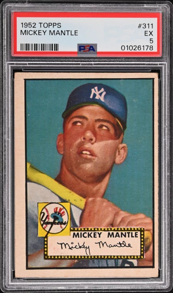 Six Mickey Mantle rookie cards were taken. The best was graded 6 (out of ten) and selling for $175,000. This one is graded 5 — you can see it’s off-center and the corners could be sharper.