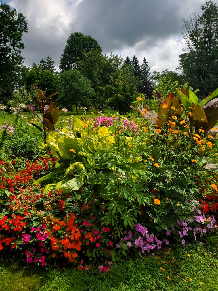 We set out this fine morning for a walk in the Mt. Tom State Reservation, but upon arriving we noticed there was a fee. At first glance it seemed like $5 for the vehicle. But, wait — that was for MA vehicles. For us Jersey folk it was going to cost $20 — just for a stroll in the woods! WTF!! Drove to Northampton instead and found Child’s Park, which was perfect. Look how pretty: