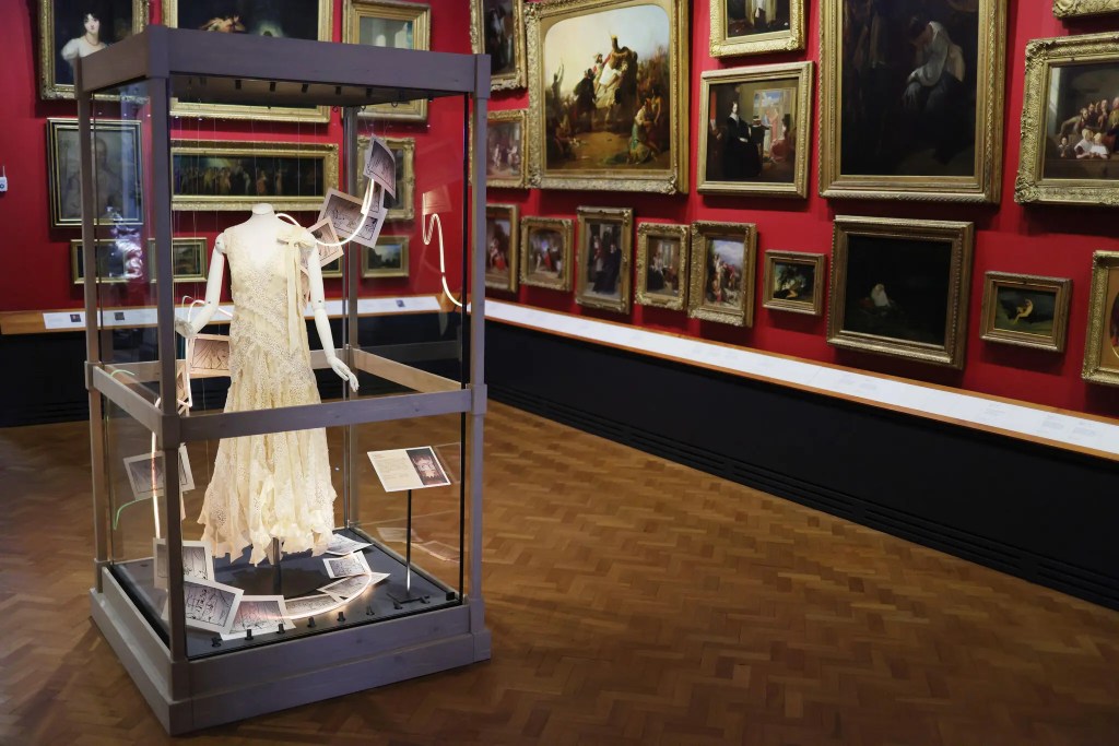 Kate Bailey, the curator, placed the red puff-sleeve Tadashi Shoji gown Ms. Swift wore in the video for “I Bet You Think About Me” next to a colossal velvet-draped four-poster bed, commissioned by the Earl of Melville in 1700 to convey status and political success.