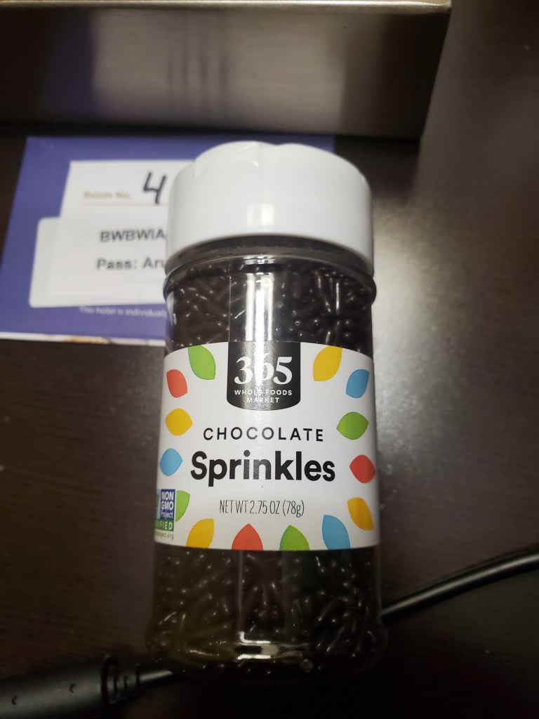 Nancy was as horrified as I was to learn about the endangered status of chocolate sprinkles. She managed to score this precious sample on the black market for $275.