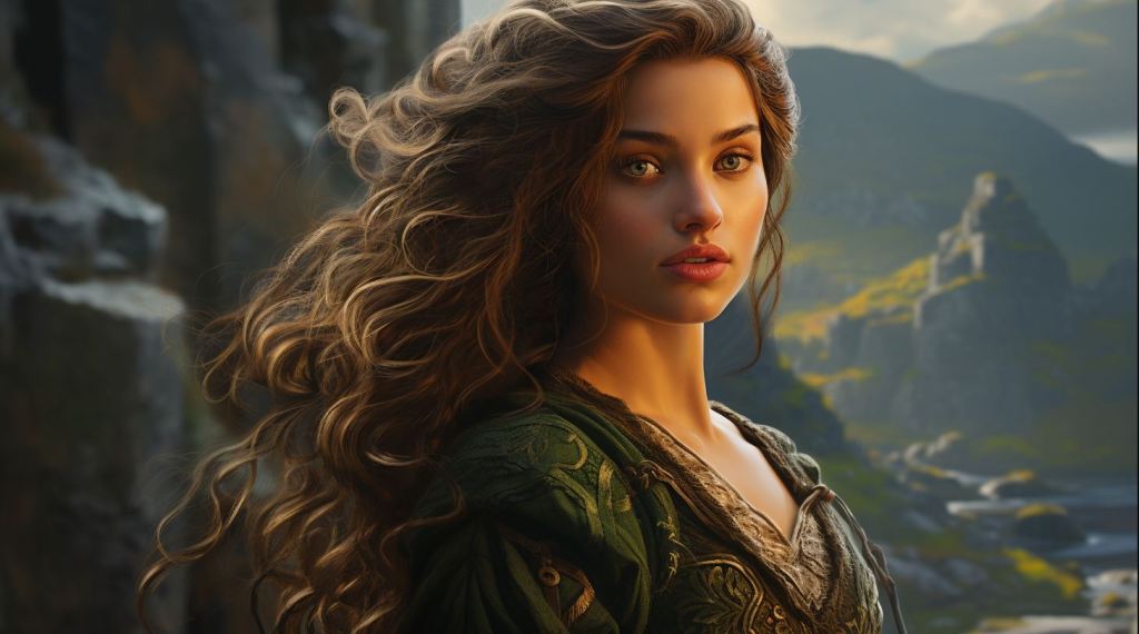 Did you know the “Tragic heroine of Irish mythology” was DEIRDRE? News to me. She’s more fully known as Deirdre of the Sorrows, and was typically the last person anyone at school wanted to invite to a party. Jeez Louise, what the hell is she doing here? Very pretty, though — that’s part of the legend.