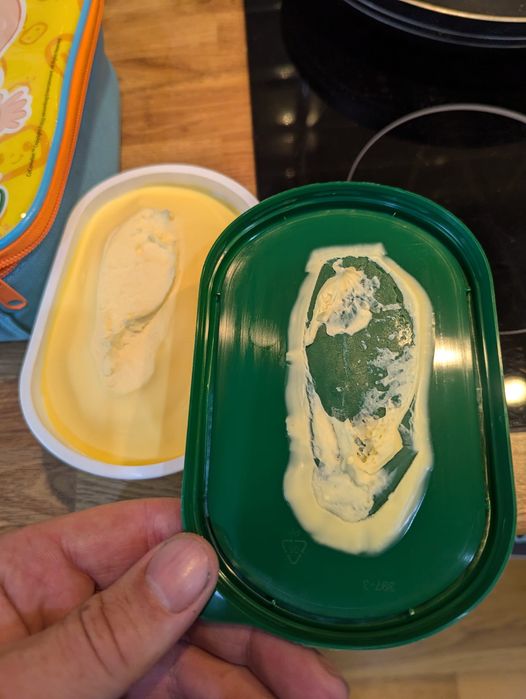 Let’s close tonight with an item from the Dull Men’s Club (UK) that had me laughing out loud. The post was by James “Fozzy” Foster and it said: You know that annoying grease proof paper that comes on the spread.. well today I opened up a pot of clover (other brands are available but clover is best) and there was no paper! Had to clean the lid off before I put it back on…
