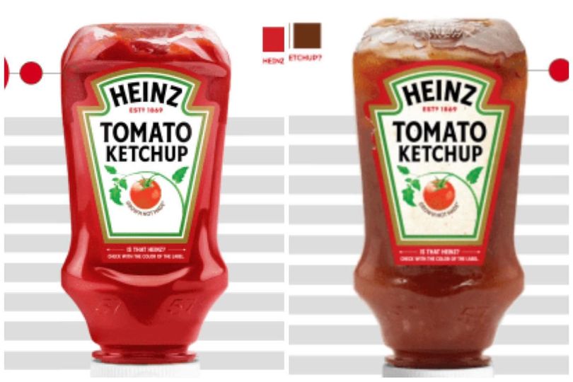 So get this: Simon Hammett of the DMC (UK) posted this: The Heinz people are so tired of restaurants and cafés refilling their bottles with non-Heinz ketchup to ‘fool customers’ that they’ve developed a label sticker where the outer border matches the exact colour of genuine Heinz ketchup. If it matches (left), it’s the real deal. If it doesn’t (right), it’s condiment fraud.
