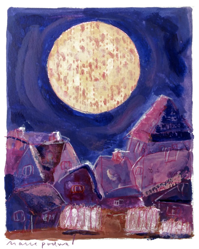 That painting is by Mark Podwal, who died on Friday at his home in Harrison, NY, at the age of 79. He was a prolific artist and writer (and a dermatologist!) mostly on Jewish themes. In 1977, after the arrest and abrupt release in France of the Palestinian terrorist known as Abu Daoud, the mastermind of the Munich Olympic attacks, Dr. Podwal drew for the NYT the Eiffel Tower dreaming, through a thought bubble, of being an oil well. It caught the eye of Elie Wiesel, who contacted him, and thus began a lifelong friendship with much collaboration.
