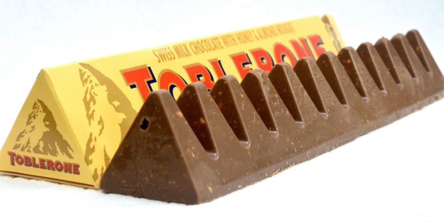 The distinct pyramidal shape of the bar lent its name to the “Toblerone line,” a series of anti-tank emplacements from WWII, prevalent in Switzerland’s border areas.