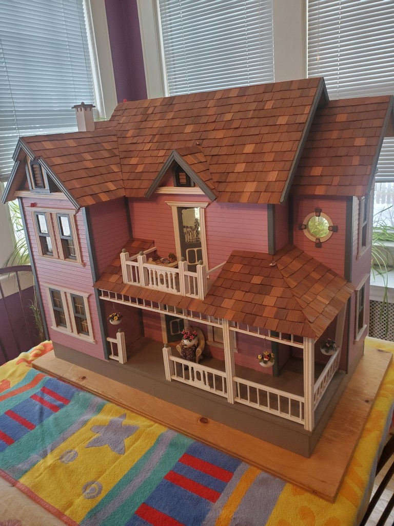 I’m thrilled to be moving a nice dollhouse I had in my office at school into Zoey’s room for her ninth birthday Monday. Here it is from the outside. Once it’s set up, I’ll try to share some shots of the furnishings with you.