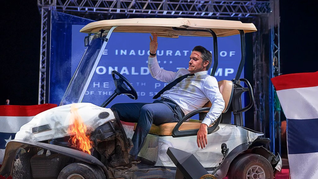 Pete Hegseth Crashes Golf Cart Into Inauguration Stage