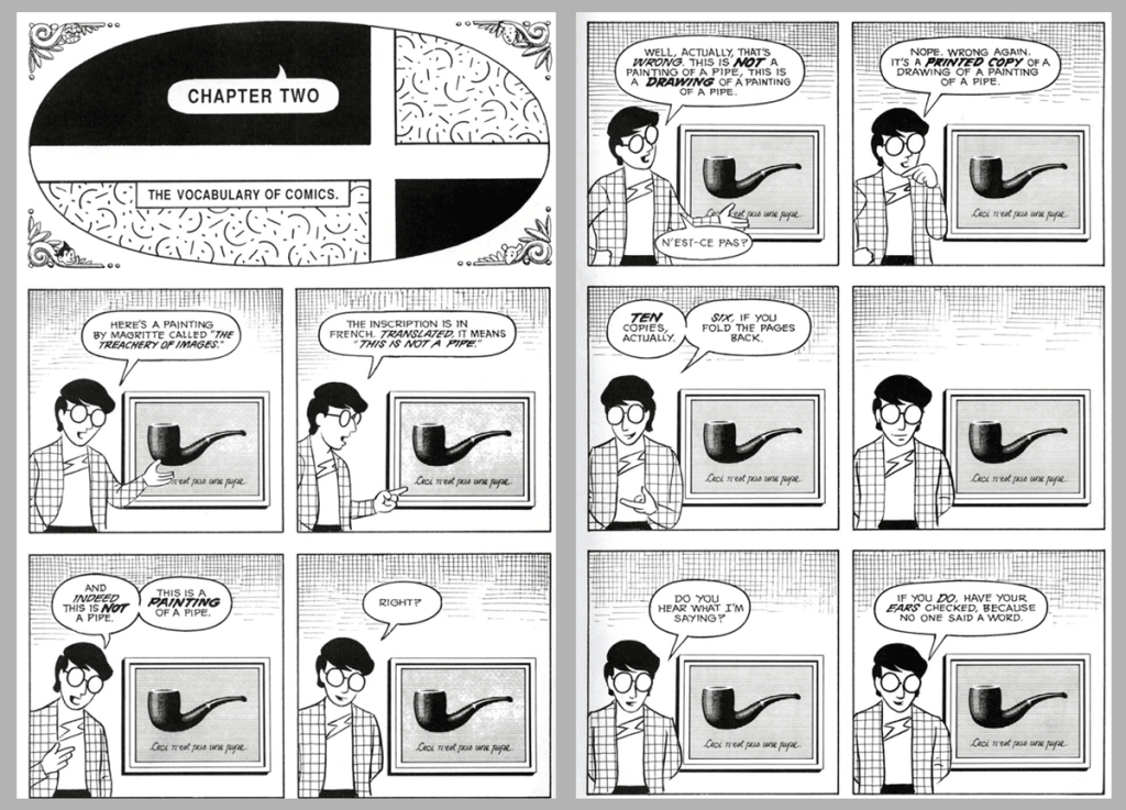 What happened was in 1929 Magritte painted a painting called “The Treachery of Images” which was a painting of a pipe. And under it he wrote “Ceci n’est pas une pipe,” which means, of course, this is not a pipe.