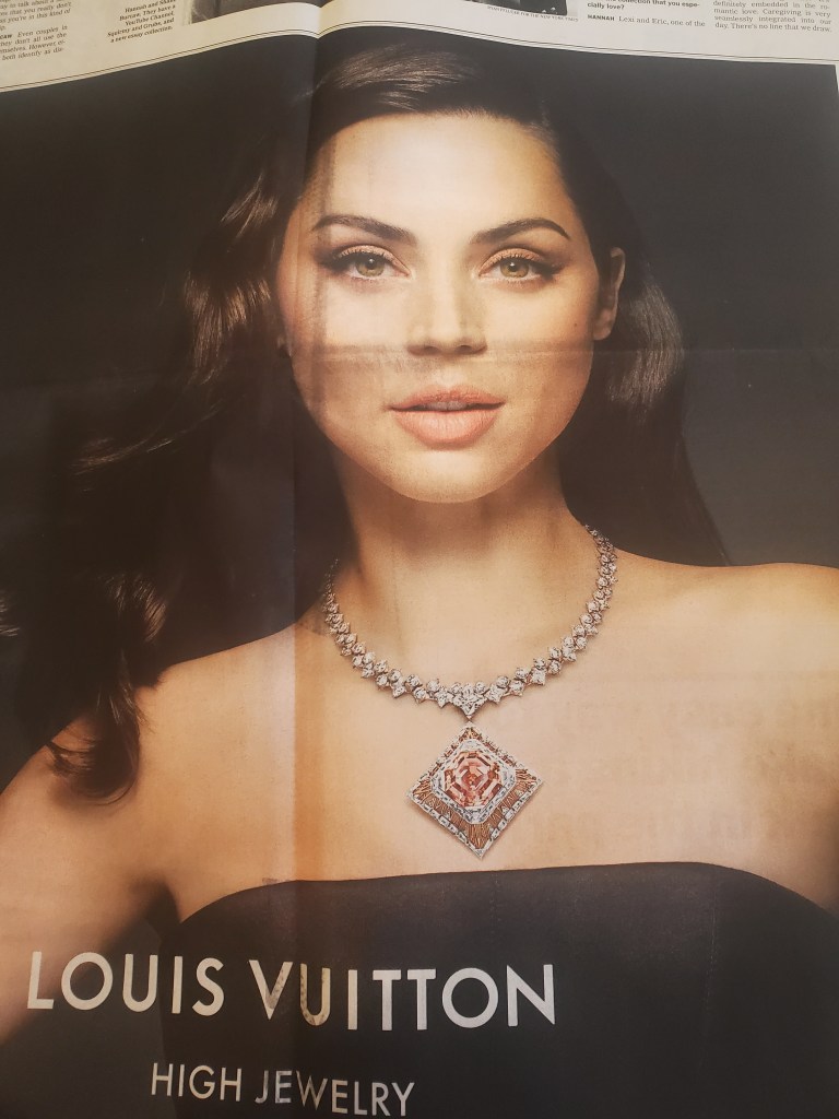 If you receive the paper edition of the NYT on Sundays you may have been as pleasantly surprised as we were while flipping through the Style section yesterday. Right there smack in the center, covering most of both center pages, is our style and culture consultant, the exquisite Ana de Armas, hawking some cheesy Louis Vuitton baubles. Next time give us a heads up, Armas — I nearly spilled my coffee.