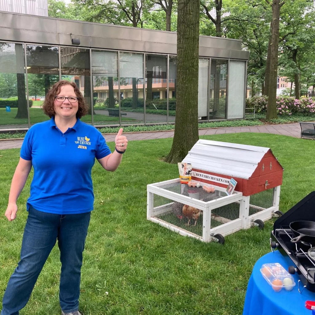 It costs $500 for a six-month contract. That includes two hens ready to lay eggs within two days of arrival. Two hens usually lay about a dozen eggs a week. You also get a portable chicken coop, feed for the chickens, food and water dishes and access to experts if you have questions. You get the option to buy the chickens at the end of the rental period or even to “chicken out,” as Tompkins said, and return the chickens early, when you realize it was another of one of your insane ideas that went to sh*t.