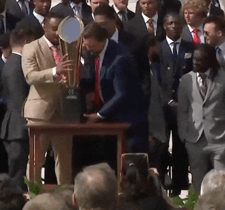 Is there no end to the ineptitude of this administration? When the Ohio State footballers were invited to the White House to celebrate their national championship, Ohioan JD Vance, attempting to pick up the trophy, dropped it and broke it. That’s him on the right. Put that in the you-can’t-make-this-stuff-up dept. To his credit, he recovered the fumble.