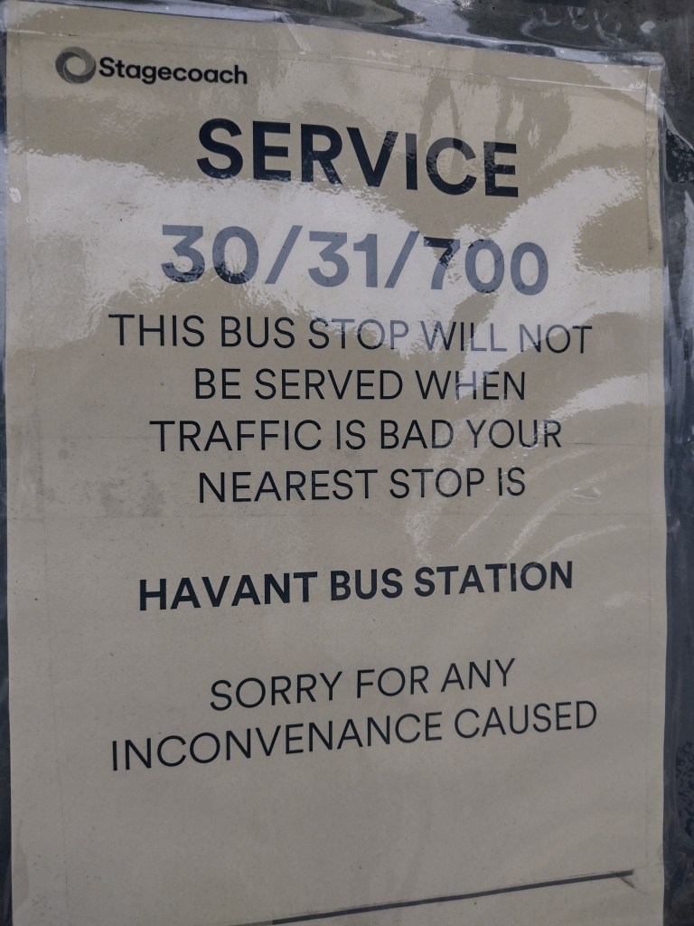 Jem Giles (photo below) of the Dull Men’s Club (UK) posts a photo of a notice at her bus stop and asks: Typical! But, got me wondering: Is there a quantitative measure of how bad is ‘bad’ traffic?