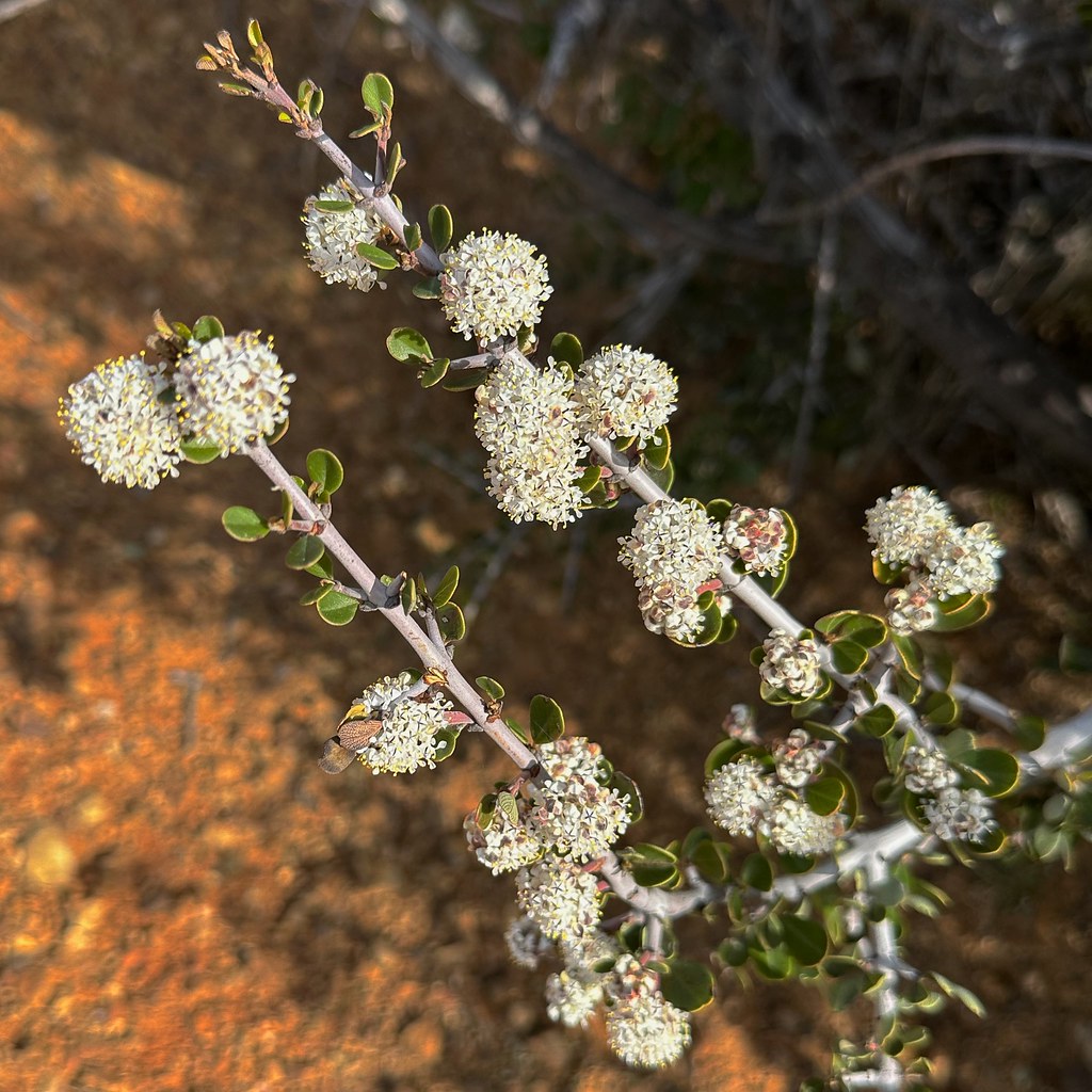 Burnt red seed-heads of buckbrush,