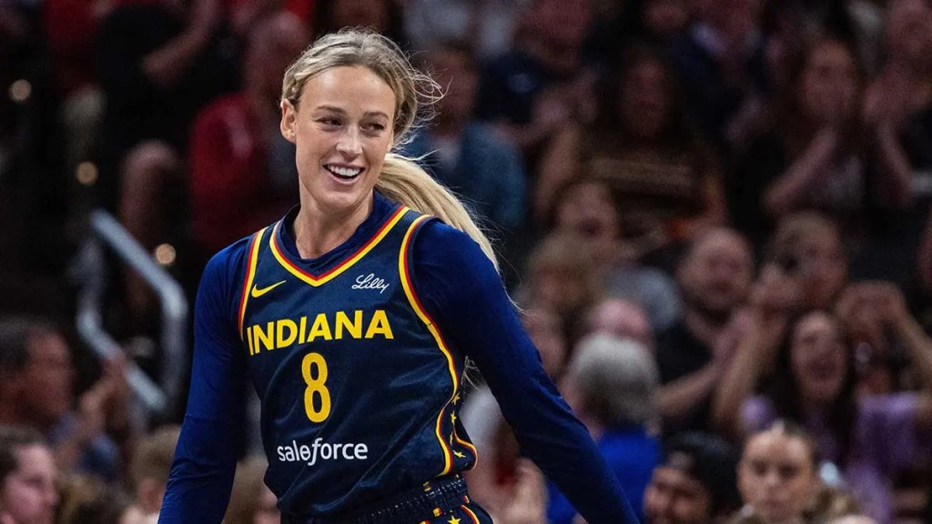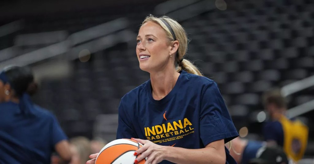 She’s Sophie Cunningham of the Indiana Fever of the WNBA, aka Caitlin Clark’s team. Here’s how not to meet her: throw a bright green bouncy sex toy at her (rubbery male genitalia (the worst kind)). Some nut did, and, let’s just say, she’s not trying to get his number. Opponent Kelsey Plum kicked it back into the stands. Ouch.