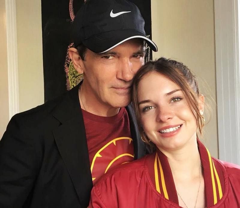 Tippi Hedren and Melanie Griffith are both beautiful women. TH is 95, kinehora, living in New Ulm MN, and MG, her daughter, just turned 68 a few days ago. She (Mel) was married to Antonio Banderas for close to 20 years. And Melanie is mom to another knockout, Dakota Johnson. But Antonio is not Dakota’s dad — Don Johnson is. Mel was married to him twice, 13 years apart. Mel did have a child with Antonio — Stella. Time to throw some faces at you. Tippi, Mel, and Antonio with Stella.