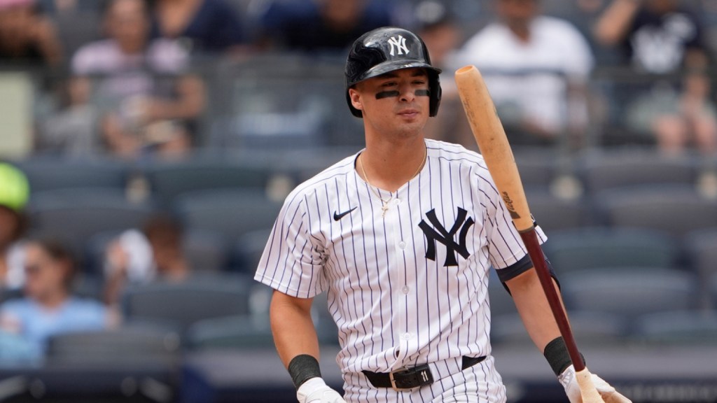 I left a small fact out of my recent description of that incredible inning in which the Yanks sent fifteen men to the plate, hit four homers, and scored nine runs. While all the fireworks were going on, poor Anthony Volpe, who has been mired in a terrible slump, made out twice — once by striking out and once by lining out. “C’mon fellas, let me in on the fun.”