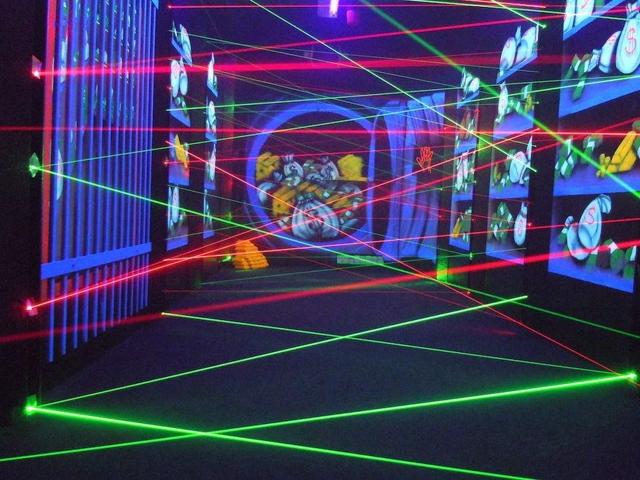 Another toughie was at 54A: “Part of a high-tech security system.” Turned out to be LASER MAZE. You’ve probably seen one in a movie protecting jewels or something in a museum.