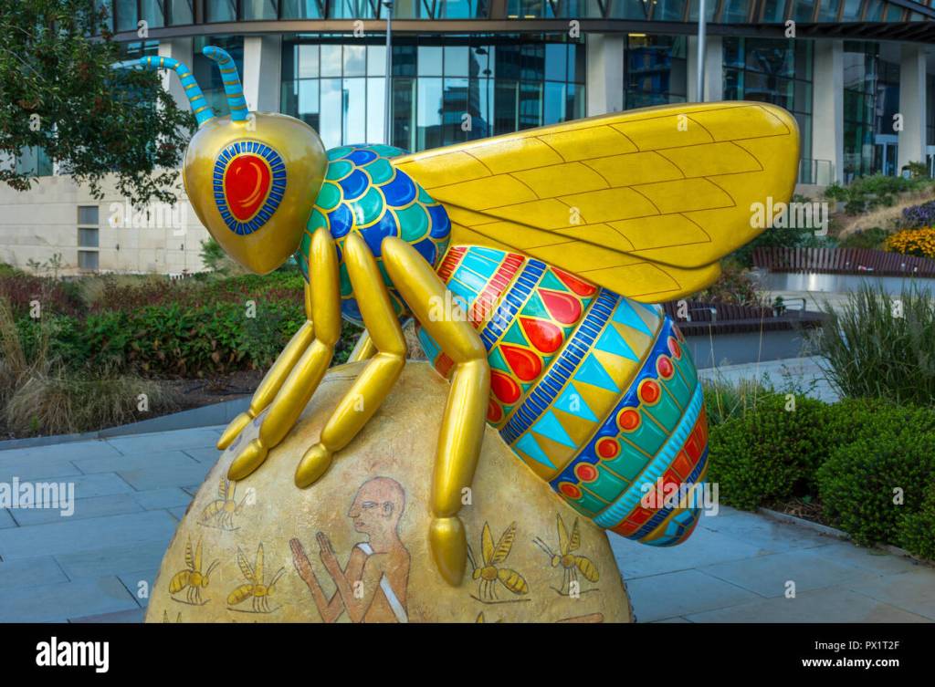 Do you know the myth about the tears of Ra, the Egyptian god? Me neither. The clue at 23A was “They arose from Ra’s tears, according to Egyptian mythology.” Answer: BEES. You can see the Egyptian heritage of this bee, in Manchester, England. Manchester is an industrial city and so the “worker bee” has become a symbol associated with it.