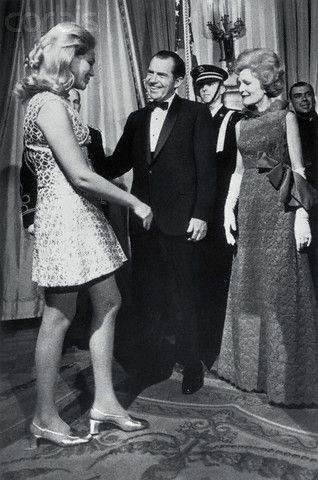 She deserved better than Ted’s flagrant infidelities and they eventually divorced. She was considered the best-looking of the Kennedy wives by the family, not that we are shallow enough to even mention that. Here she is, first as a bride, and then famously appearing at a formal dinner at the Nixon White House in a minidress. Gasp.