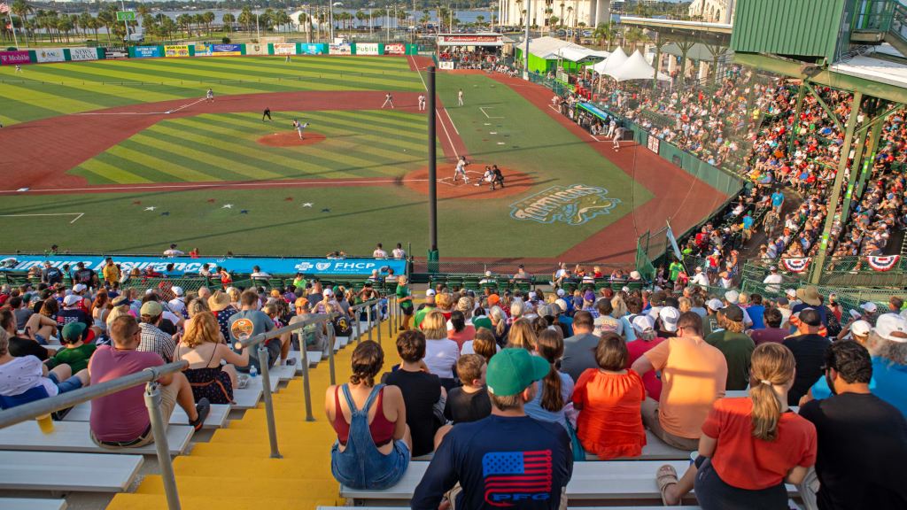 The oldest is in Daytona Beach FL, Jackie Robinson Ballpark, which opened in 1914 as City Island Ballpark. In 1989, 75 years after it opened, it was named after Jackie Robinson. This rechristening was in honor of the events of 1946, when Robinson played at the park during spring training. This marked his first appearance as an active player in the Brooklyn Dodgers organization, more than a year before his epochal Major League debut. Here’s how it looks today: