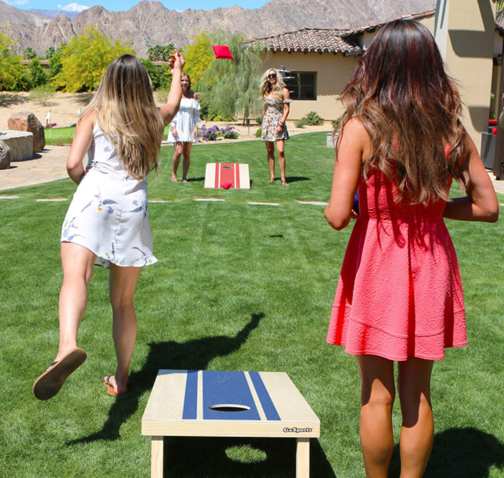 It leaves a lot to unpack, amirite? First, cornhole is that game where you try to throw beanbags through a hole in a board. Like so —