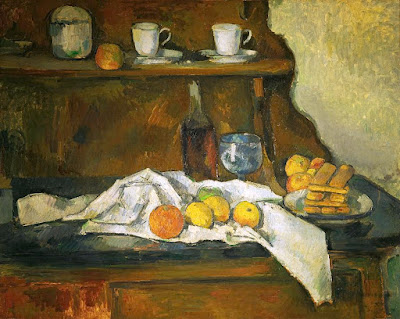 The theme of yesterday’s puzzle was STARVING ARTISTS. The three theme answers were all artists clued via works of theirs that involved food. LEONARDODAVINCI (“The Last Supper”), PAULCEZANNE (“The Buffet”), and CLAUDEMONET (“The Luncheon”). Here are the latter two, respectively.