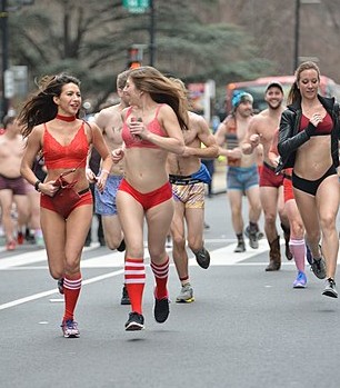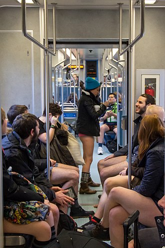 The first photo above is from Cleveland. The second is from Washington DC. Undie runs should not be confused with No Pants Subway Rides, annual events where a group of people take a ride on a subway train while not wearing pants. Beginning in New York in 2002, the event spread worldwide to as many as sixty cities as of 2013.
