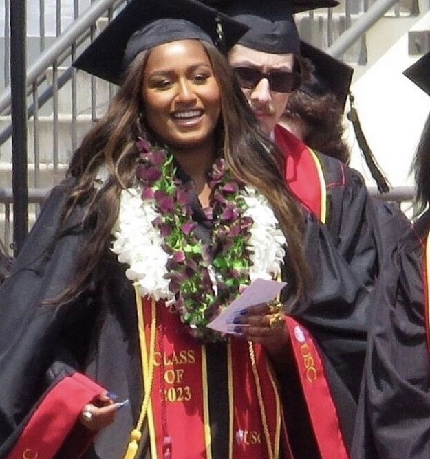 Sasha started college at UMich (yay) but transferred to USC (boo), and graduated last May. [Yikes!! — did you know that in February of 2017, her sister Malia started an internship for Harvey Weinstein at The Weinstein Company film studio in NYC?! Sheesh. She apparently emerged unscathed and graduated from Harvard in 2021.] Here’s Sash on her big day. Knock ’em dead, sister!