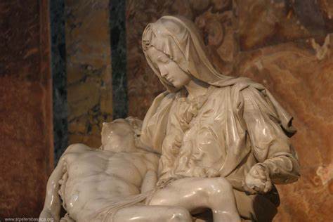 More seriously, on May 21, 1972, a mentally disturbed geologist, Laszlo Toth, attacked the sculpture with a geologist’s hammer while shouting, “I am Jesus Christ; I have risen from the dead!” With 15 blows he removed Mary’s arm at the elbow, knocked off a chunk of her nose, and chipped one of her eyelids. Bob Cassilly, an American sculptor and artist from St. Louis, Missouri, was one of the first people to remove Toth from the Pietà. “I leaped up and grabbed the guy by the beard. We both fell into the crowd of screaming Italians. It was something of a scene.” Onlookers took many of the pieces of marble that flew off. Later, some were returned, but Mary’s nose wasn’t, and it had to be reconstructed from a block cut out of her back. (The same thing happened to a cousin of mine: now, whenever you slap him on the back, he sneezes.)